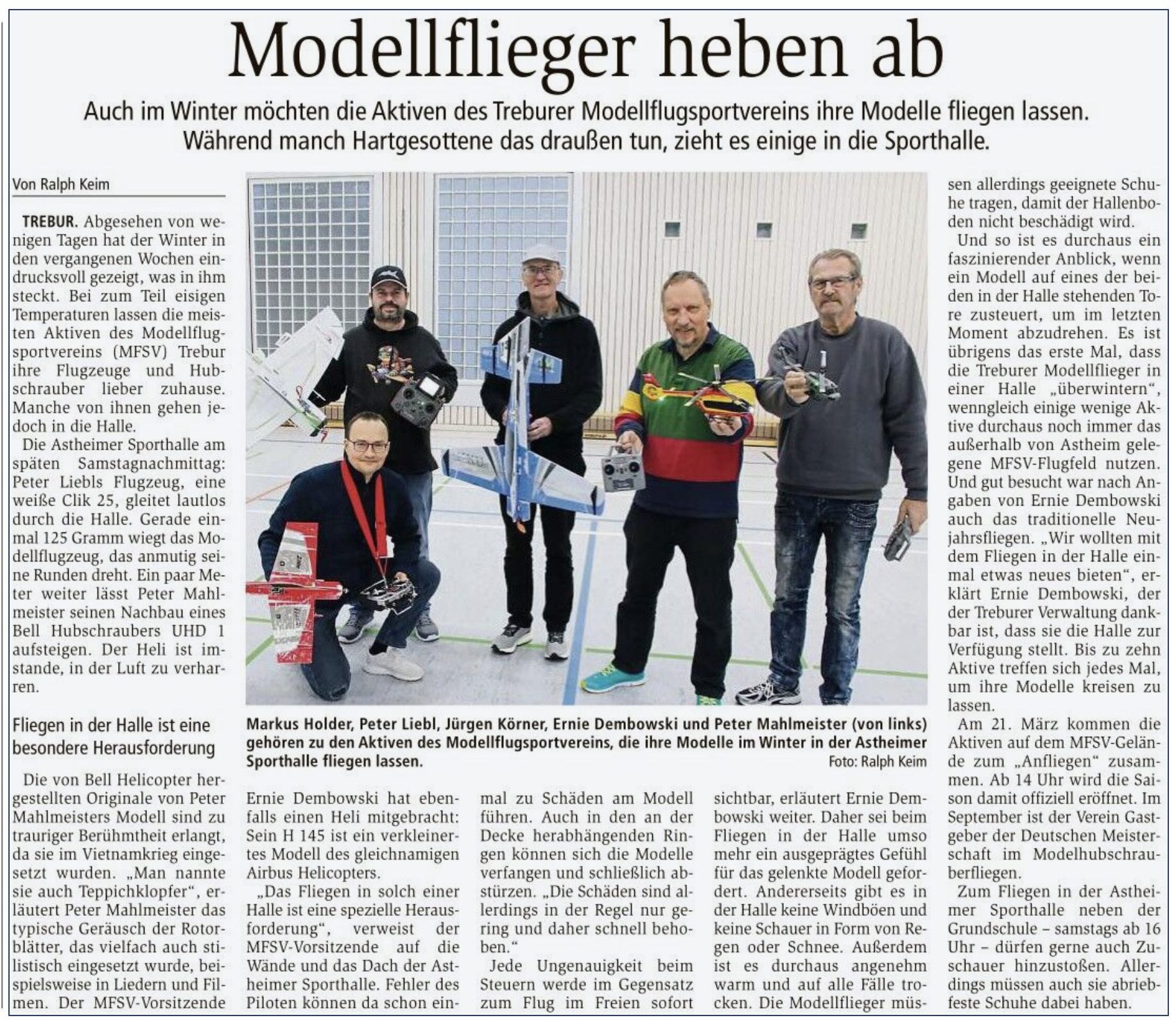 Hallenfliegen in Astheim – 17. Januar 2026 von Markus Holder · Veröffentlicht 20. Januar 2026 · Aktualisiert 20. Januar 2026 Bericht Rüsselsheimer Echo vom 20. Januar 2026