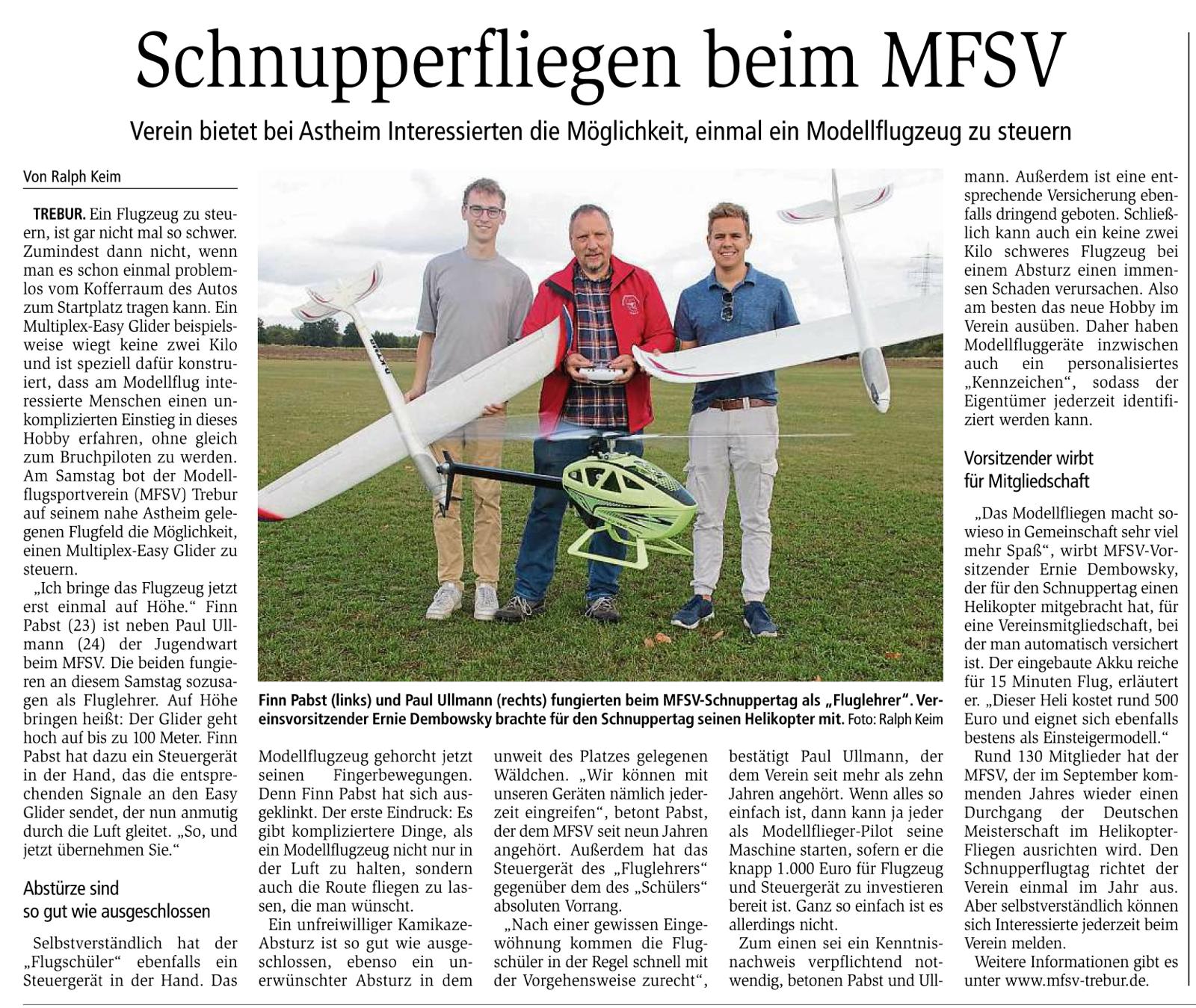 Schnupperfliegen am 30. August 2025 von Markus Holder · Veröffentlicht 1. September 2025 · Aktualisiert 1. September 2025 Bericht Echo vom 31. August 2025